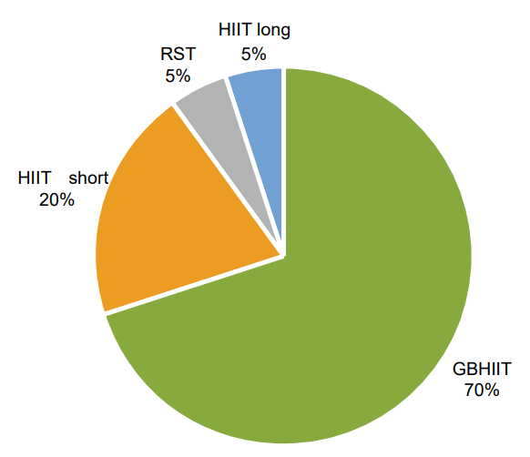 Considering the risk-to-reward ratio, this HIIT format is completely excluded from conditioning programs in football. When looking from a sport-specificity perspective, this amount of continuous all-out effort will never happen in a football match. Additionally, the strain on the locomotor apparatus, especially hamstrings is extremely high, and the risk of injury is highly increased. By looking at Laursen & Buchheit’s chart (above), we can see that S&C practitioners don’t have this tool in their toolbox when it comes to conditioning football players. Although personally aware of the presence of this format in football settings around the world, I highly recommend using different strategies.